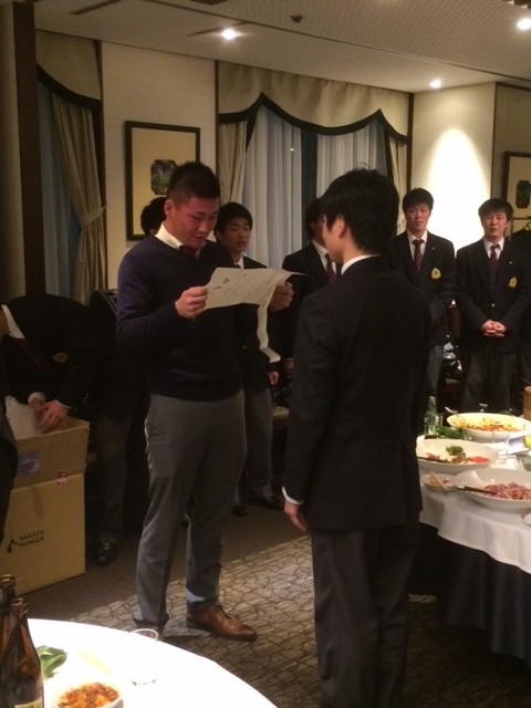 その後は謝朋殿にて送別会が行われ、高橋先生のご挨拶、坂上先生の乾杯で始まり、四年生は思い出に浸りながら笑顔の多い、楽しい時間を過ごしていましたが、四年生一人一人からご挨拶をいただいた時には、私達は感動し心を打たれるものでした。