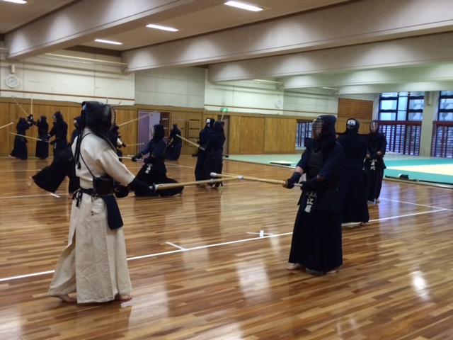 今回は現役生最後を飾るよう四年生を基立ちにして、指導陣をはじめ学生や諸先生方、諸先輩方が掛かっていく形で稽古しました。