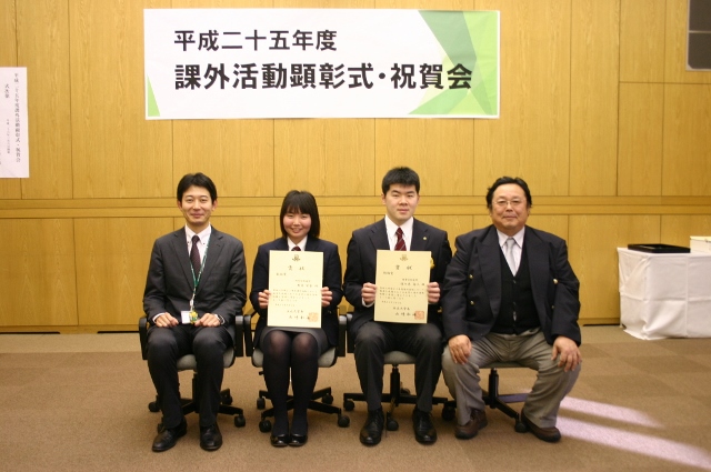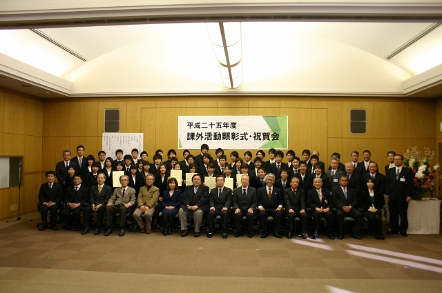 3月6日(木)午後3時00分から、大崎キャンパスにおいて平成25度課外活動顕彰表彰式・祝賀会が行われました。当日は、山崎学長より、賞状と奨励金が授与されました。
