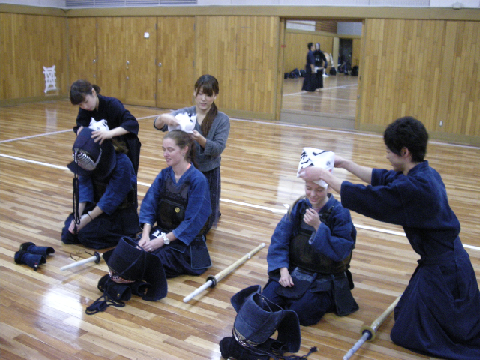 その後、留学生たちは実際に防具を着けて、